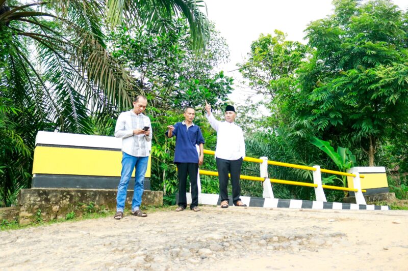Jumat (15/3/2024) sore jembatan tersebut ditinjau langsung Pj Bupati Apriyadi Mahmud bersama Kadis PUPR Muba Alva Elan SST MPSDA.
