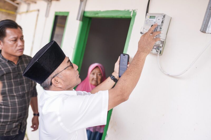 Pantauan di lokasi tampak mantan Kadinsos Pemprov Sumsel itu mengisi langsung pulsa token listrik kediaman Suhartini yang baru usai dipasang.