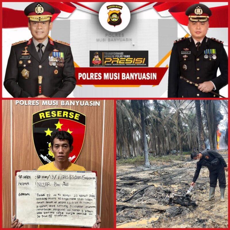 Sat- Reskrim Polres Muba. Melalui Unit Pidana Khusus melakukan penyelidikan atas kebakaran tersebut, dan mengamankan Seorang tersangka adalah pemilik sumur. Nizar (37) warga desa Kasmaran kecamatan Babat Toman Kabupaten Muba.